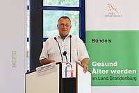 Der Landesseniorenbeauftragte Norman Asmus führte in die Veranstaltung ein. In seinem Grußwort betonte er, dass zentrale Aspekte der selbstbestimmten, eigenständigen und vielfältigen gesellschaftlichen Teilhabe Älterer der anlogen Welt auch im digitalen Raum verwirklicht werden können. Daher sei es das Ziel, dass möglichst viele Ältere im Land Brandenburg souverän die Chancen der Digitalisierung für ihre Zwecke nutzen können. Die Zusammenarbeit mit allen Aktiven und die Partnerschaft mit der Initiative DigitalPakt Alter soll die Aktivitäten zur Digitalen Fitness Älterer im Land sinnvoll unterstützen.