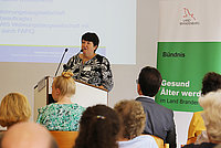 Siglinde Bröder von der Stiftung MedienKompetenz Forum Südwest und Projektleitung des Projekts DiBiWohn (Digitale Bildungsprozesse für ältere Menschen in seniorenspezifischen Wohnformen der institutionalisierten Altenhilfe) informierte zu ihrer partizipativen Forschung und den daraus resultierenden Prozessen zur Vermittlung digitaler Kompetenzen an die Bewohnerinnen und Bewohner im Betreuten Wohnen und in der stationären Pflege. Dabei nahm sie unter anderem Bezug auf die Besonderheiten des Lernens im Alter und die die Herausforderungen, die sich für die Entwicklung wirkungsvoller Angebote stellen.